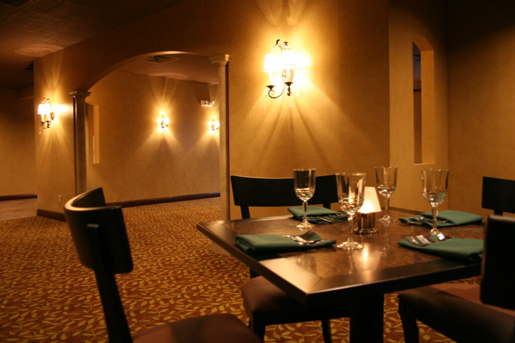 Inside, the former retail floorplate was reimagined as a flexible exposition center, supported by a fully renovated commercial kitchen, bar, and restaurant. These interconnected spaces create a dynamic venue capable of hosting conferences, banquets, trade shows, and large regional events.