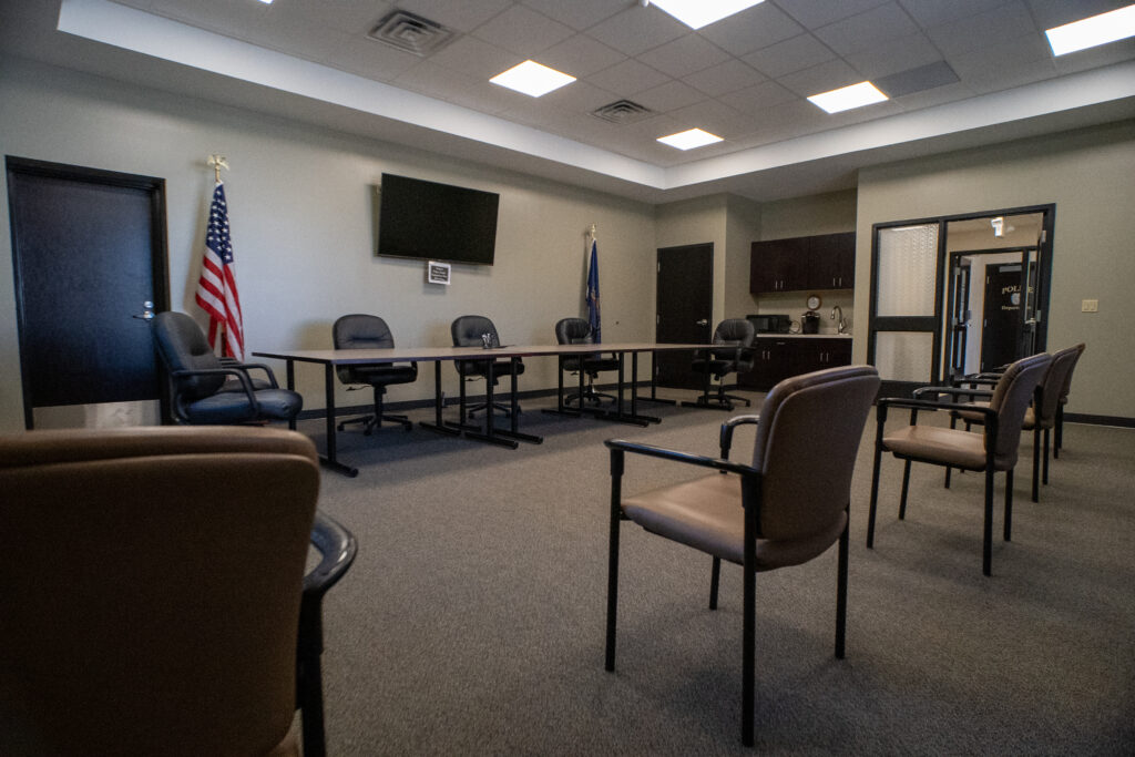 The expanded facility introduces new offices, a public meeting room, locker and toilet facilities for township staff and the police department, as well as dedicated storage areas for vehicles and equipment. The design balances functionality and efficiency, supporting both administrative and service operations under one cohesive roof.