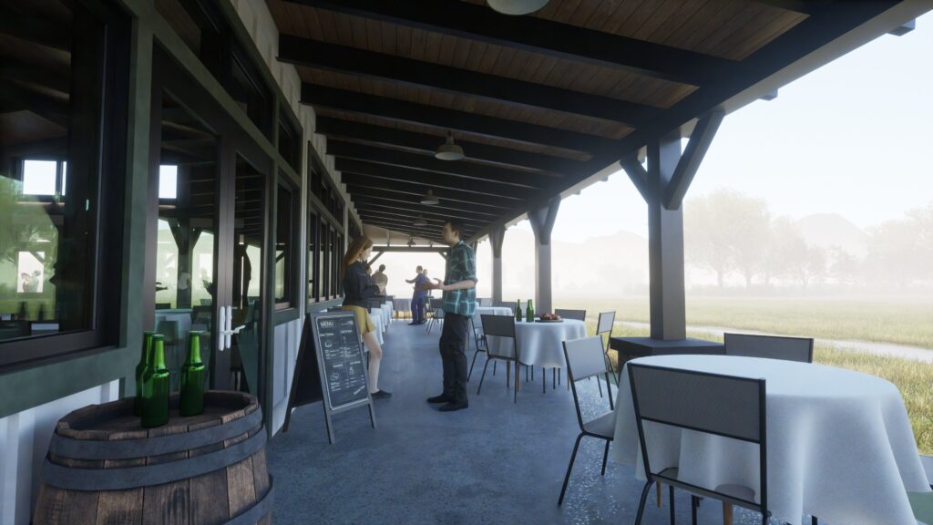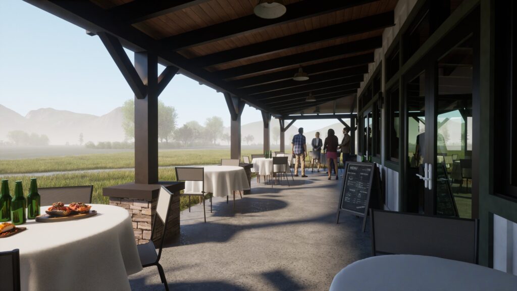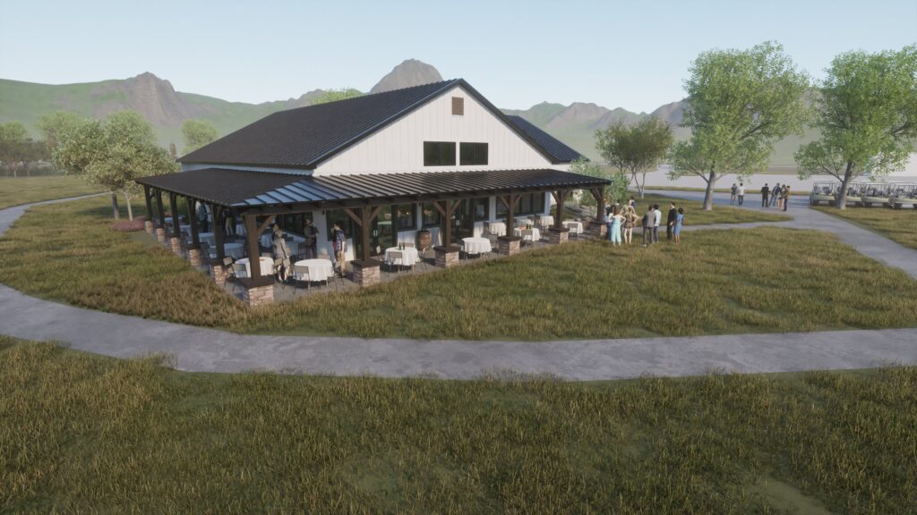 The envisioned clubhouse brings together a bar, pro shop, restaurant, and banquet venue, creating a welcoming hub for golfers, leagues, tournaments, and community gatherings. Central to the concept is an indoor virtual golf area that opens directly to the banquet and bar spaces—providing year-round recreation and added flexibility for events.