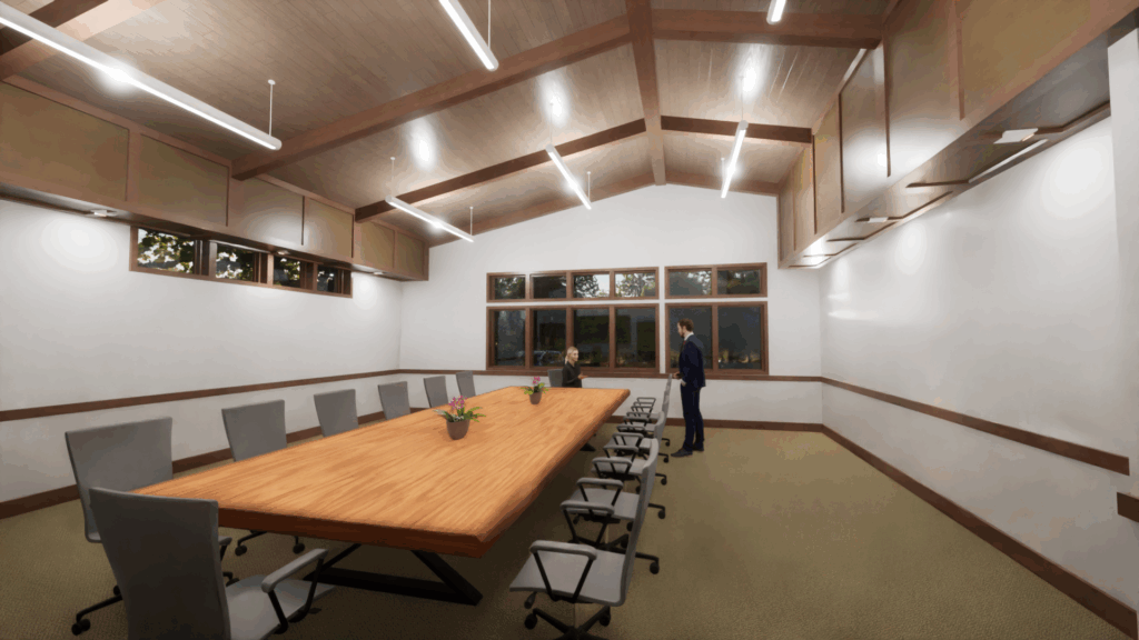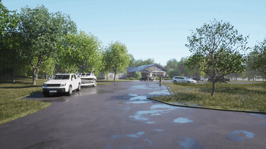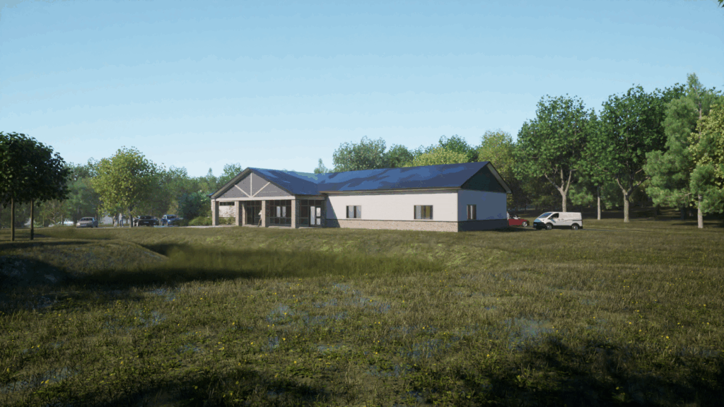 The design emphasizes sustainability and efficient use of space through a compact floor plan, high-efficiency HVAC systems, and a thermal envelope performing 31% better than code requirements. The integrated PV array will offset the building’s total energy consumption, supporting the Commonwealth’s commitment to sustainable park facilities.