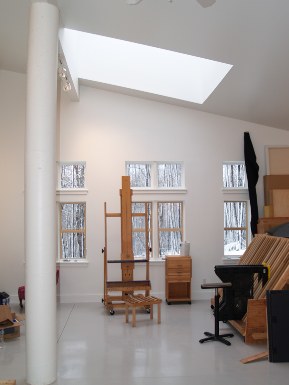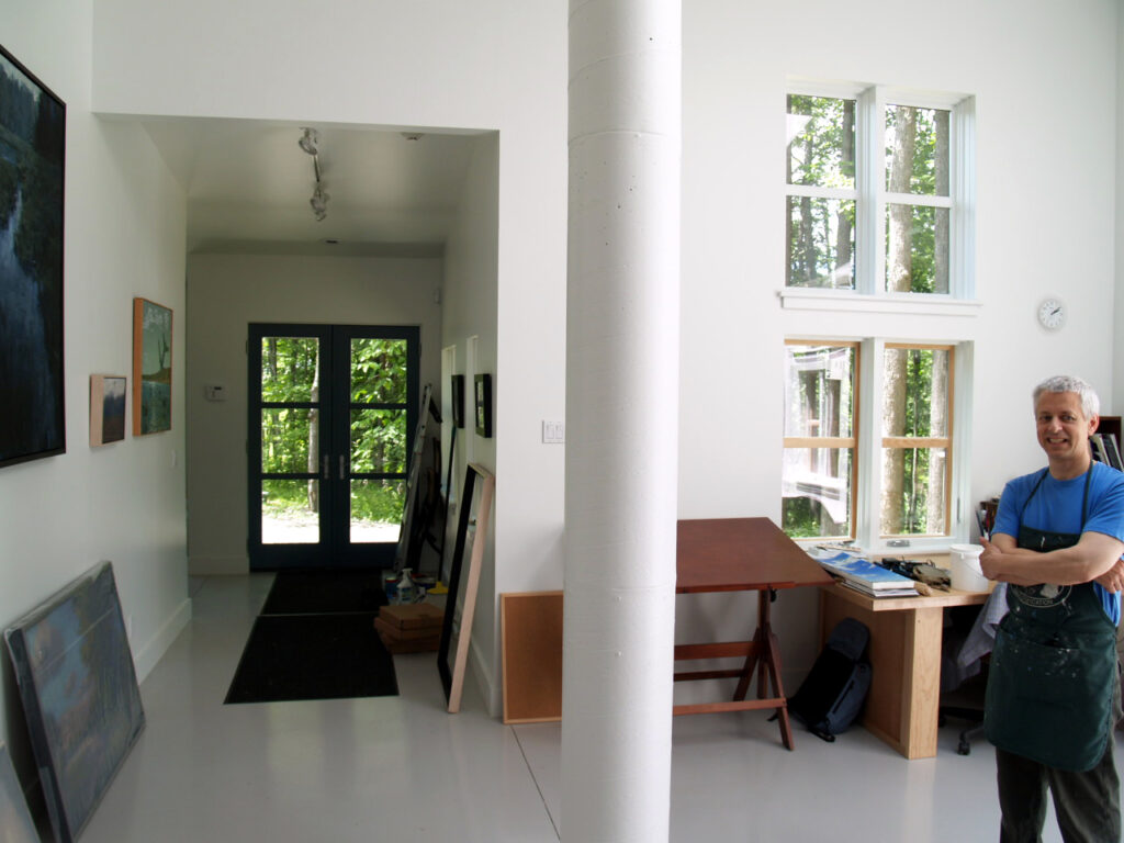 In collaboration with artist Thomas Paquette, Inscale Architects designed an energy-efficient studio that harmonizes with its natural surroundings. Thoughtfully oriented to capture soft, indirect daylight, the space provides an ideal environment for Paquette’s creative work while minimizing energy use.