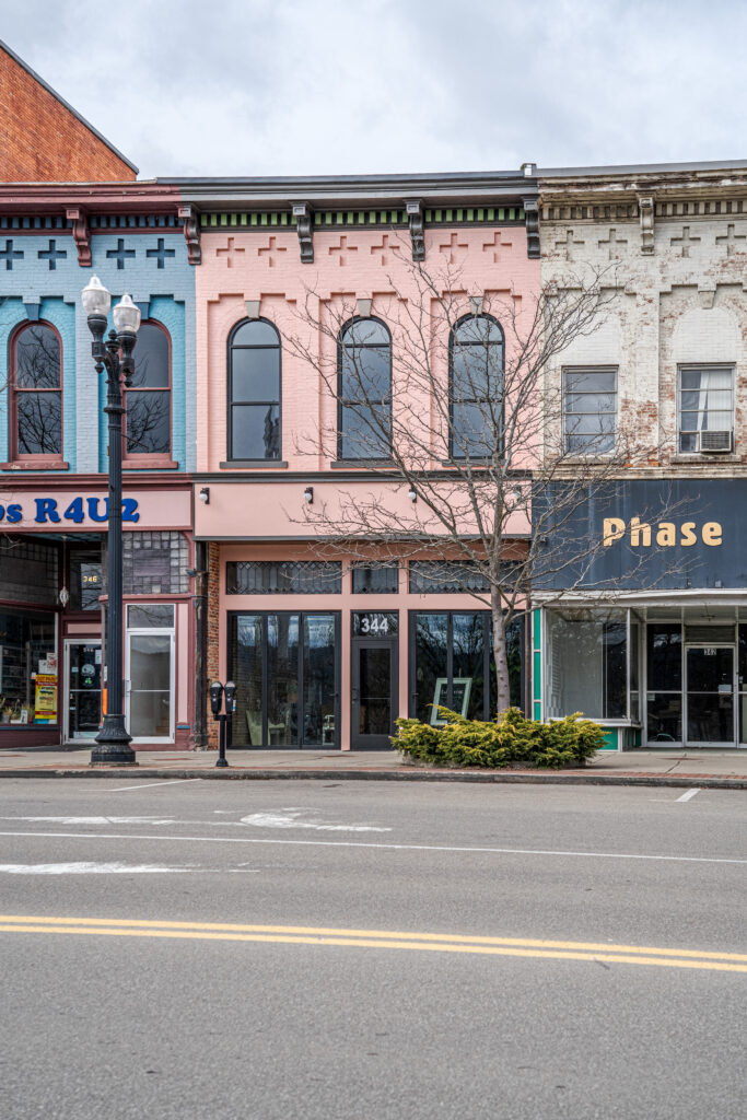Located in historic Warren, Pennsylvania, Twig & Vine is a sophisticated adaptive reuse project that transforms an 18th-century mercantile building into a dynamic blend of wine bar, whiskey speakeasy, and modern residential living. Inscale Architects preserved the character of the original masonry bearing walls while reshaping the building to support new, contemporary uses.