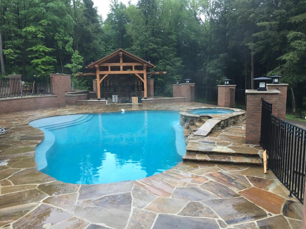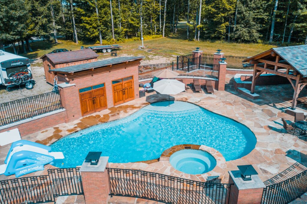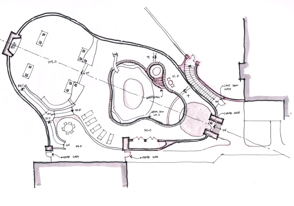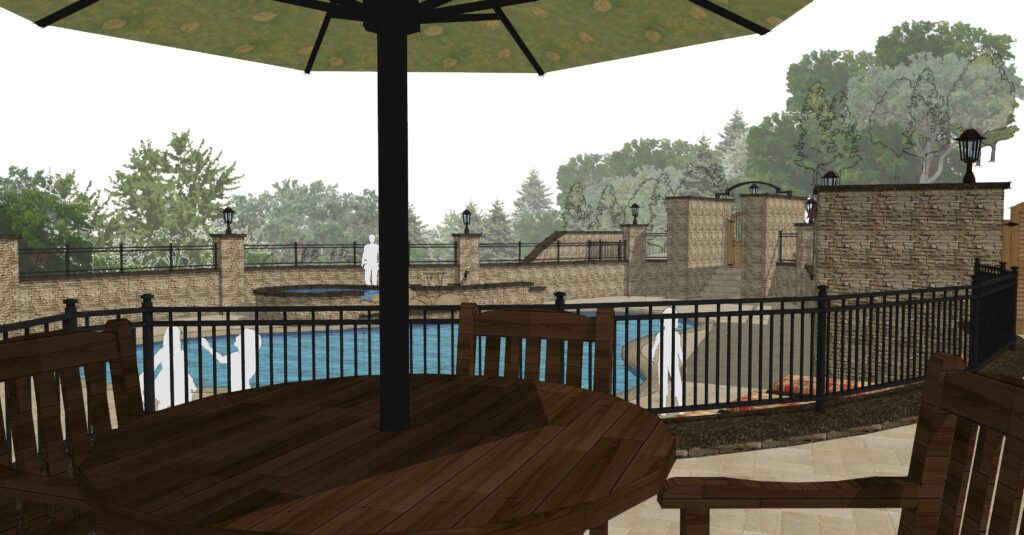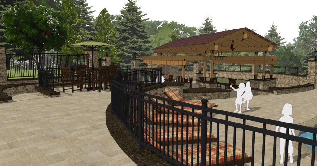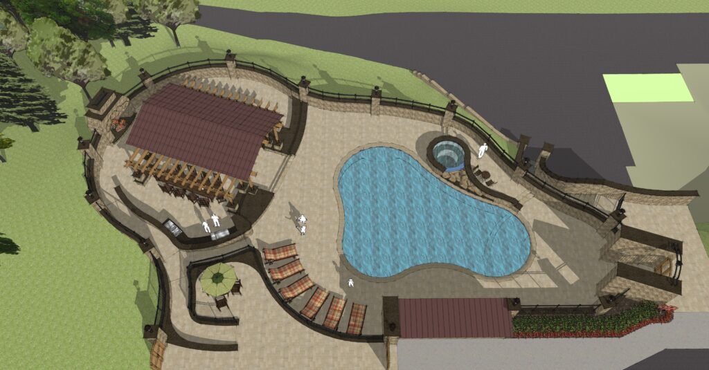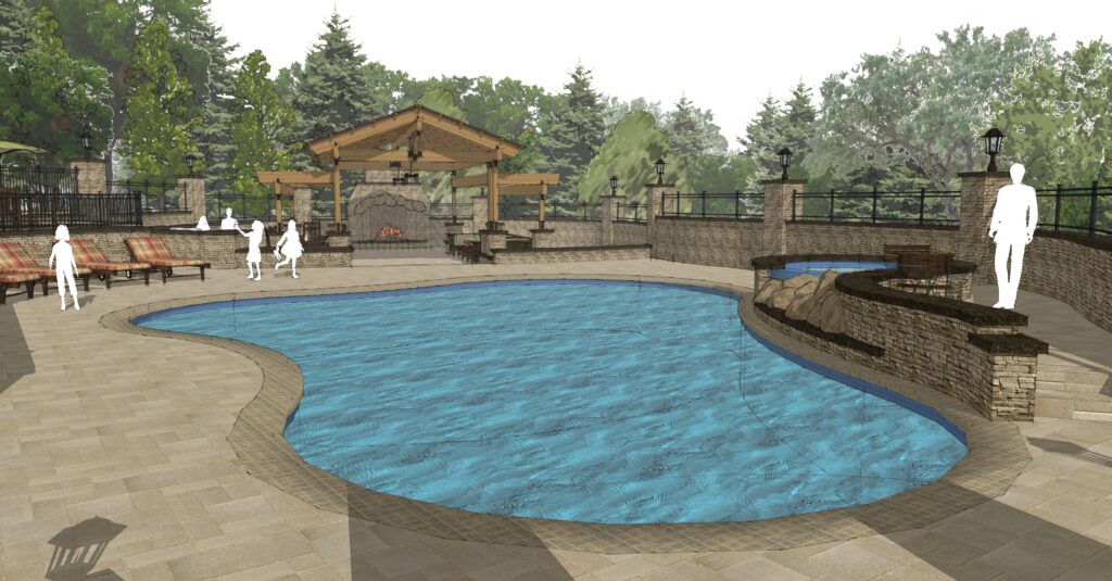 Set within a tranquil wooded landscape, the Woodland Oasis project creates a resort-style outdoor living environment that seamlessly connects the main residence with a future guest house. Anchored by a large pool and waterfall hot tub, the design centers on relaxation, gathering, and year-round enjoyment of the site’s natural beauty.