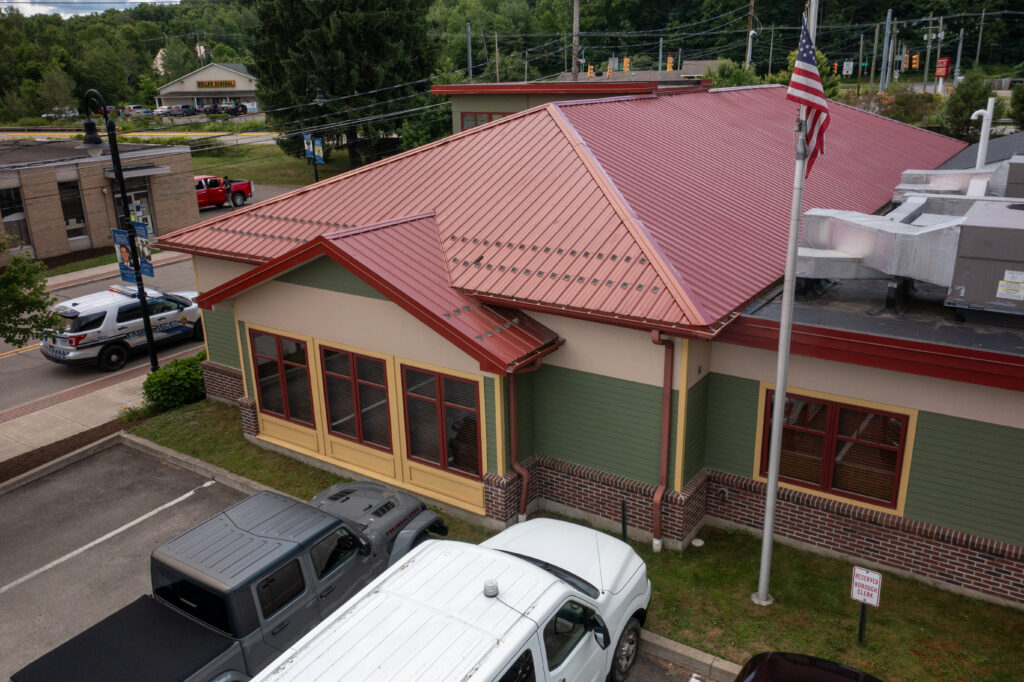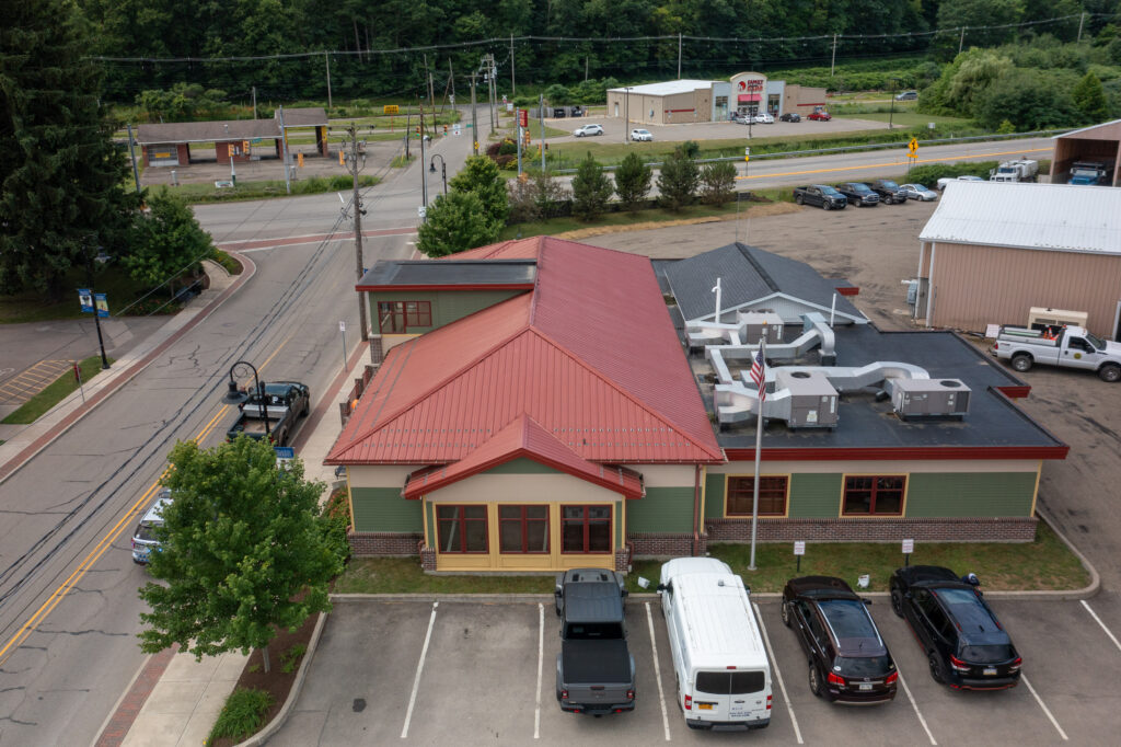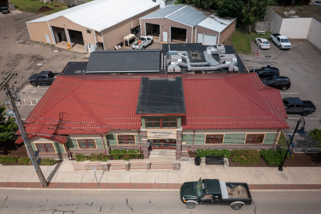 The new Borough Building was carefully configured to wrap around an active water treatment facility, which could not be taken offline. This strategic layout preserved existing traffic patterns while establishing separate entrances for employees, the public, and the police department, improving circulation and safety across the site.